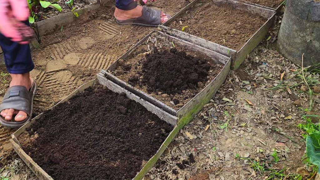 Once the soil is replaced, another thin layer of worm castings is added on top. This additional layer helps retain moisture, prevents soil from drying out too quickly, and continues to provide nutrients for the plants. It also improves soil texture, making it more suitable for healthy root development.