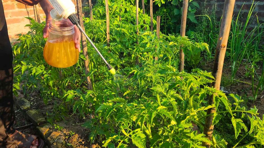 - Apply in the morning or evening to avoid sunburn on the leaves.